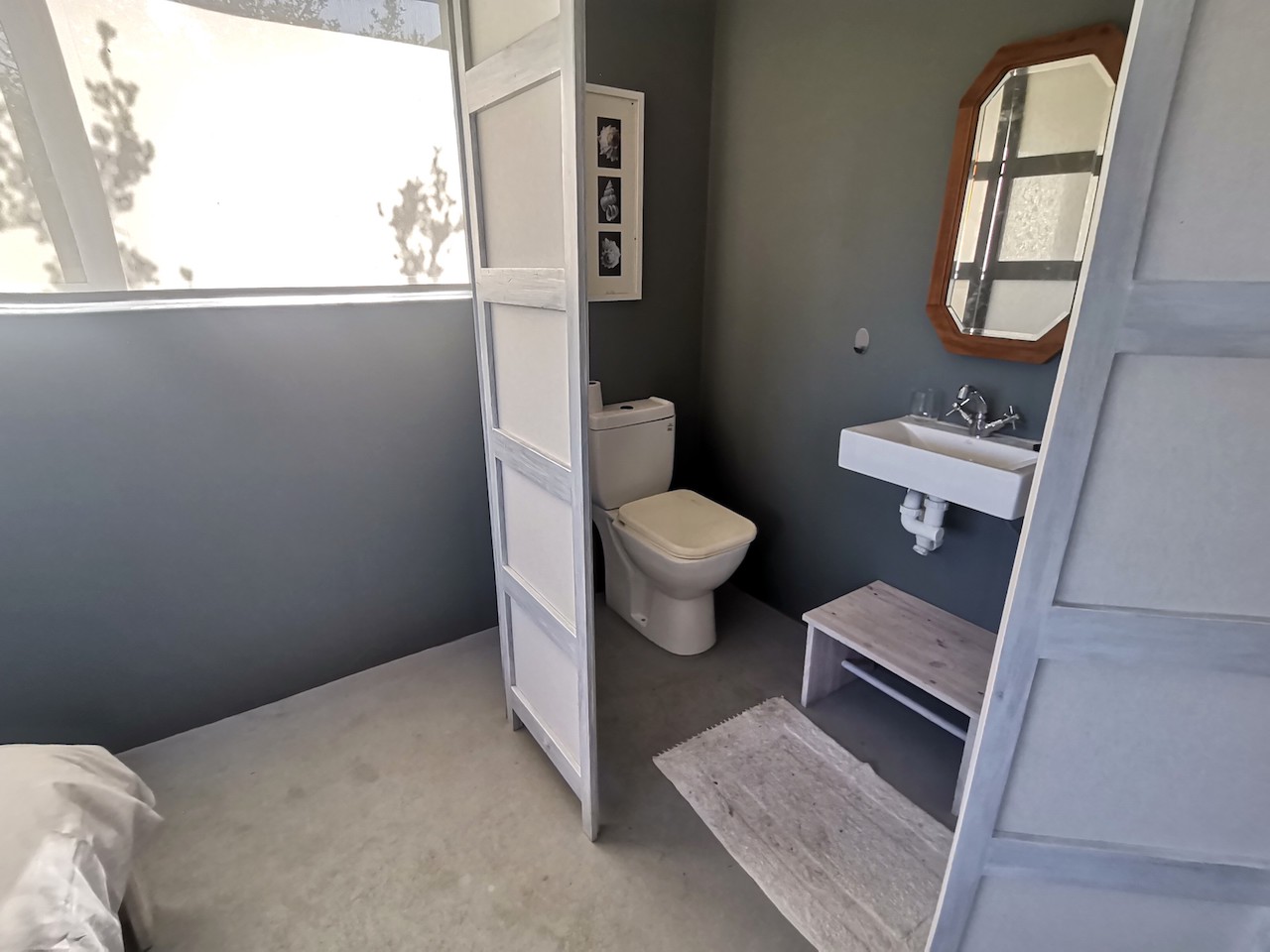 Shared bathroom with shower downstairs.